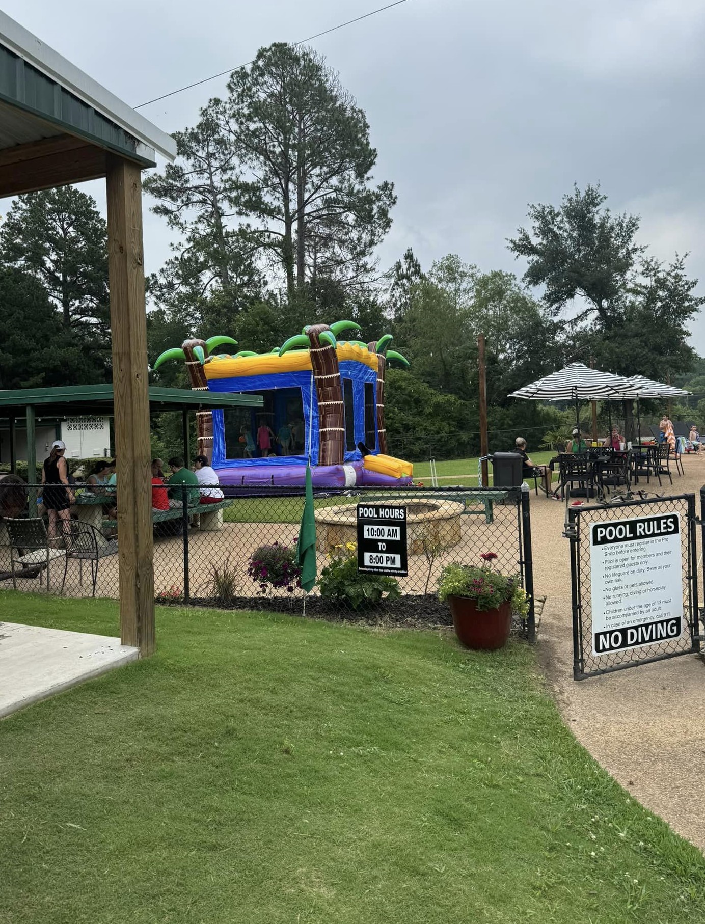 Our pool is open during the season from 10 am to 8 pm. The pool is for members only. Guests of members are welcome but must pay a fee. Everyone using the pool must sign a waiver and check in at the Pro Shop. No outside alcohol allowed.